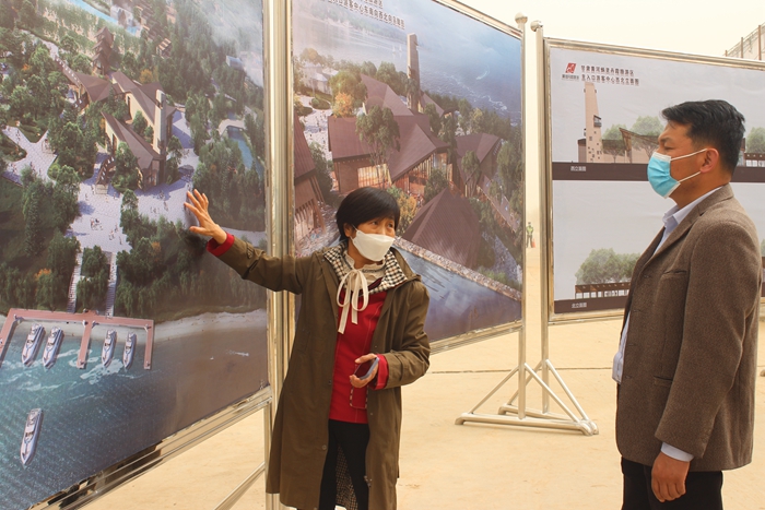 (現(xiàn)場領(lǐng)導(dǎo)嘉賓參觀甘肅黃河炳靈丹霞文旅項(xiàng)目介紹展板)