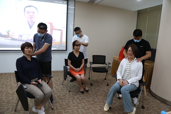 講座結(jié)束后,大家紛紛參與現(xiàn)場(chǎng)中醫(yī)養(yǎng)生體驗(yàn),在座的白領(lǐng)大多數(shù)都是整天伏案工作,或是長(zhǎng)時(shí)間對(duì)著電腦,難免頸肩背出問題,而中醫(yī)理療方法就是對(duì)付頸肩背問題的最好的方法。