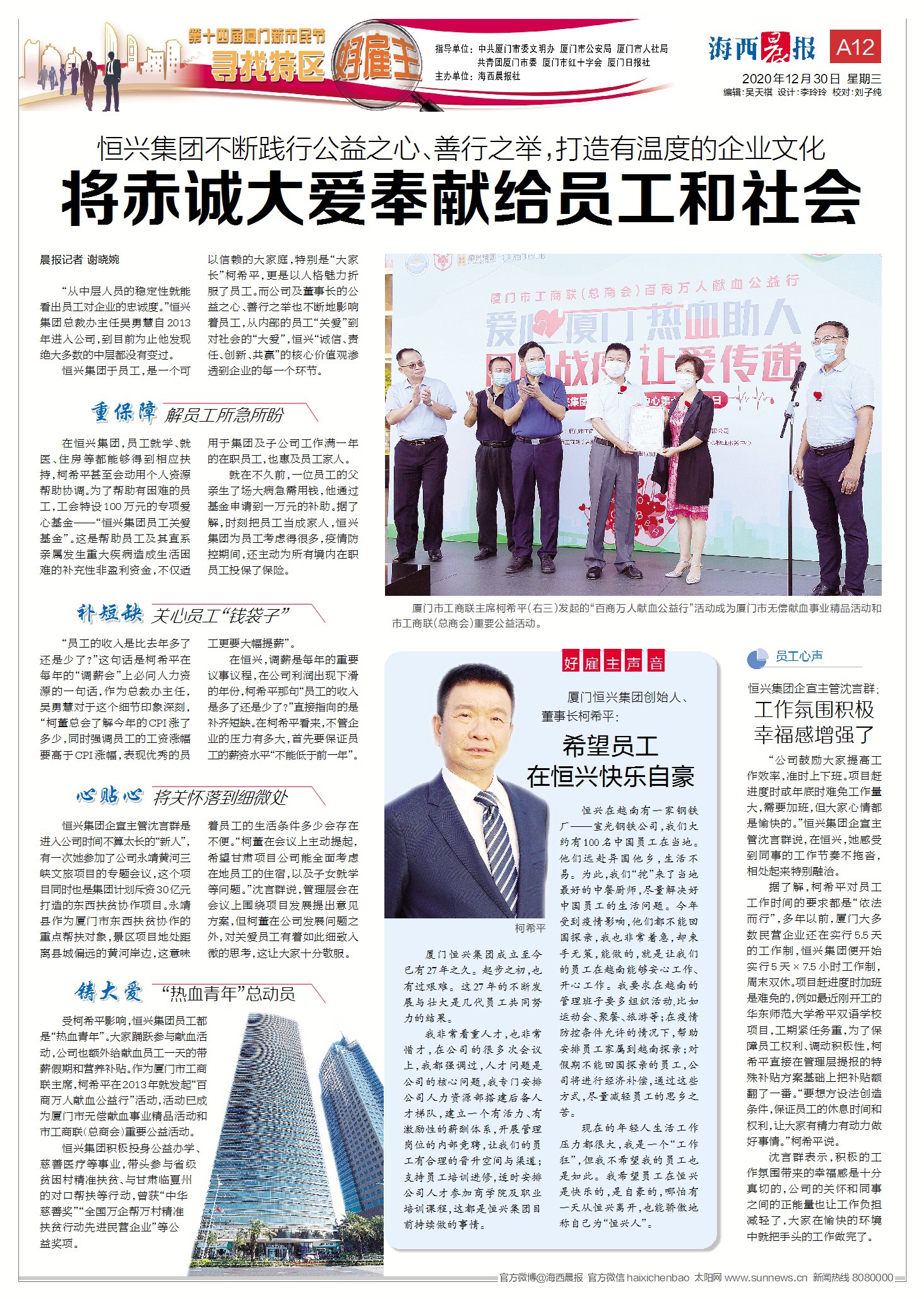 廈門恒興集團(tuán)不斷踐行公益之心、善行之舉